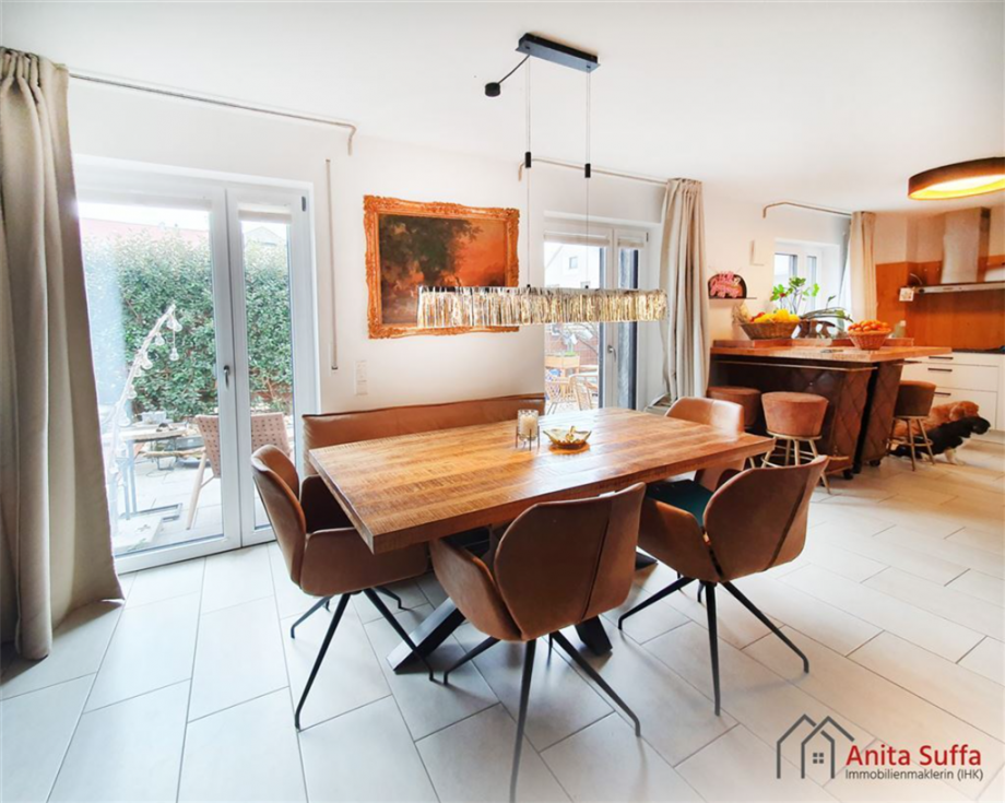 o Großzügiger, lichtdurchfluteter Wohn-, Ess- und Kochbereich mit bodentiefen Fenstern